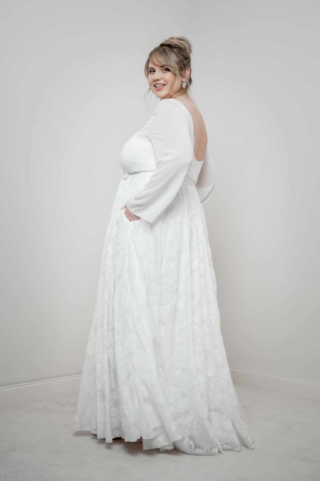 Gilliane-Brautrock für Curvy Brides – fließende A-Linie mit floraler Struktur