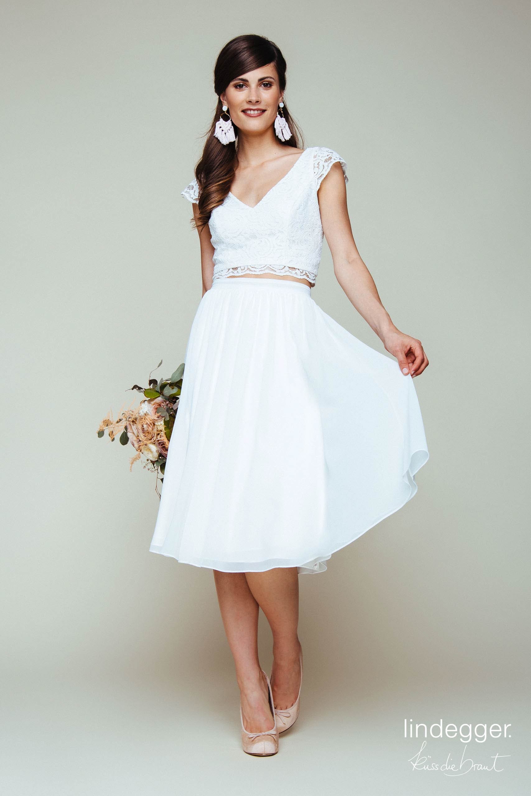 Beschreibung Zweiteiliges Braut-Outfit aus Spitze und fließendem Rock Leicht, verspielt und wunderbar individuell: Mit dem Mix & Match Zweiteiler von KÜSSdieBRAUT setzt du auf moderne Brautmode, die Persönlichkeit zeigt. Das